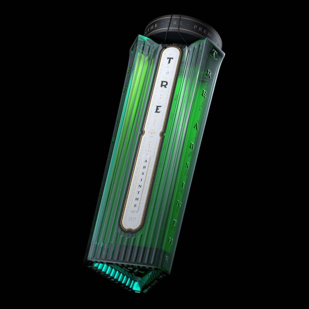 Delivering a rich ​​mélange of timeless design and branding, SANQUER Pear Calvados captures the legacy of Normandy’s fruit brandy. Sanquer is a fictional calvados brand created upon Oleg’s research on alcoholic beverages: “I made this project purely as a concept, as a skill training and as an addition to my visualization portfolio. It has no customer or buyer, but I hope it will one day.”