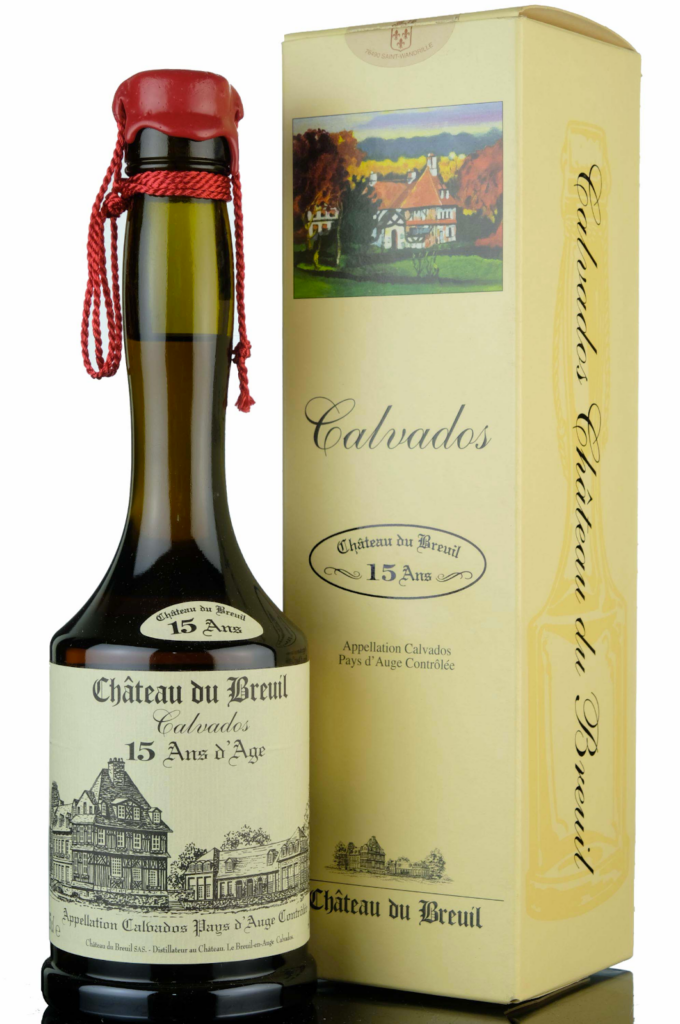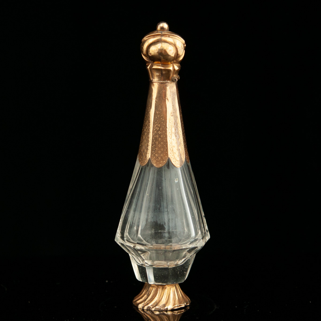 L-R: 19th Century French crystal gold perfume bottle; Château du Breuil 15 Ans D’Age; and a pear – duh.